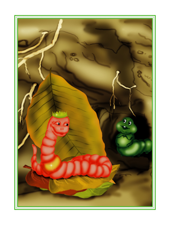 На возвышении из горы прелых листьев возлежал толстый дождевой червяк с красивым оранжевым поясом на брюхе. При виде гостьи он потянулся, чтобы выглядеть еще длиннее, и важно произнес: