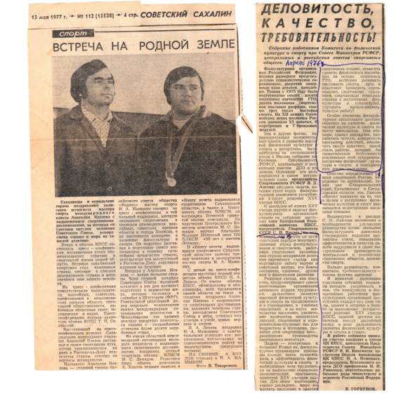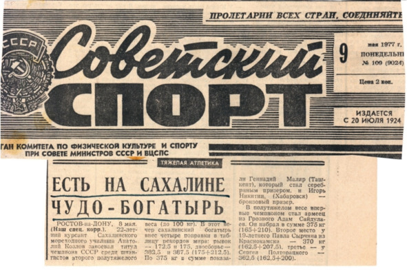 И как бы ни были весомы успехи в зимних видах, первым к вершинам большого спорта прорвался сахалинский тяжелоатлет. Вот как пресса описывали путь и успехи Анатолия Козлова.