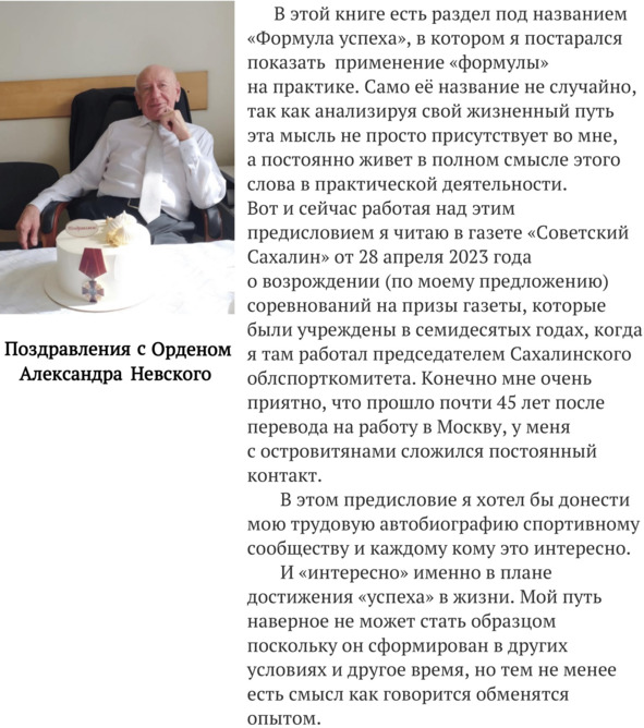 Сейчас я могу с уверенностью заявить что всегда стремился исполнить любое начатое дело до конца. И как правило у меня это получилось. Как? Ответить однозначно на этот вопрос не просто. Но кому это интересно то может проследить этот путь в моих книгах «Спортсмены СССР в Олимпийских играх»,»,«Каждый может стать моложе», «За высотою – высота», Вопреки всему»,» Соль земли»», «Мощное оружие»и», «Зрячий видит за бугром»» Мой Сахалин» и циклом из 50 публикаций а интернет-газете «Российский стадион». «Об усовершенствовании системы управления спортивным и олимпийским движением в России» Но чтобы добиться определённой цели необходимо мечтать и иметь для этого желание