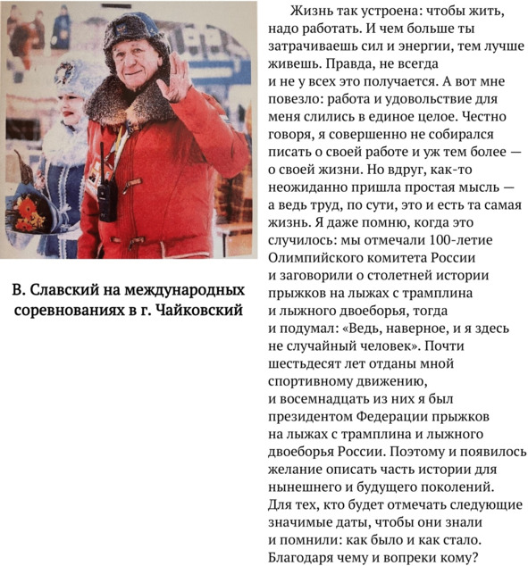 Не вижу смысла углубляться в эту тему, но я очень ясно понял, что 18 лет работы первой в истории России федерации по прыжкам на лыжах с трамплина и лыжного двоеборья могут уйти в небытие. Ведь непосредственно нашу текущую работу знали очень немногие. Тем более оценить ее однозначно не просто, да и вряд ли кому это нужно? Сейчас уже не важно, какой она была – хорошая или плохая, или, как у нас было принято оценивать: удовлетворительно или наоборот? Только для истории это имеет значение, а также и для памяти, и еще для меня честь и достоинство всегда были важными понятиями. Вот я и принял решение: написать эту книгу – отразить период своего президентства в фактах и документах.