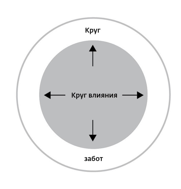 Обратимся к схеме Стивена Кови «круг забот и круг влияния». Посмотрите на рисунок