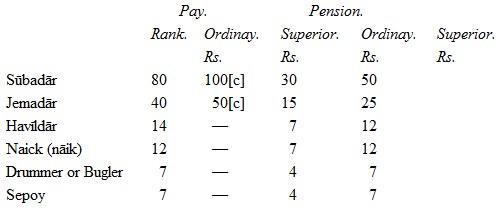 b. The monthly rates of pay and pension now in force for native officers and men of the Bengal army are as follows: