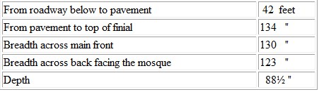 Fergusson (ed. 1910, vol. ii, p. 297) successfully justifies the vast size of the gateway. 'The semi-dome is the modulus of the design, and its scale that by which the imagination measures its magnificence.'