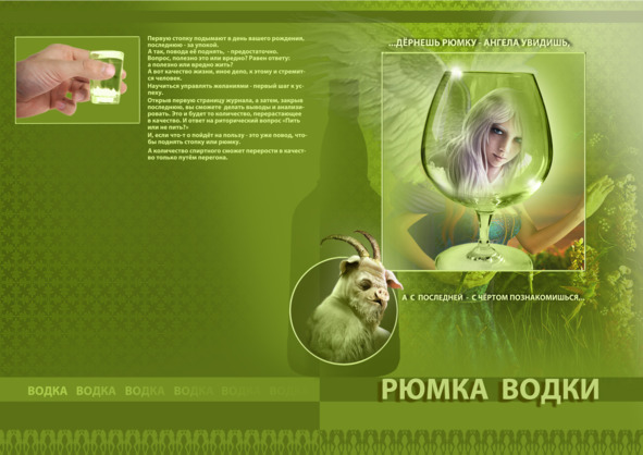 Им продемонстрировали фильм. Половина участников эксперимента при просмотре ела легкую закуску и пила клюквенный сок с водкой, остальные просто смотрели кино. Затем мужчинам предложили 15 творческих задач, требующих подбор нужных слов.