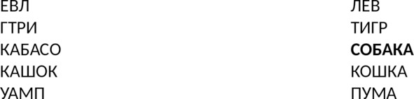 1. Какое из этих слов лишнее? Вы видите ряды слов, в которых перепутаны буквы – не сразу и поймешь, что это за слова. Но, немножко напрягая свой мыслительный аппарат, кинув беглый взгляд, мы вдруг обнаруживаем, что это названия животных. Зная, как называются животные, мы четко понимаем, какое из них лишнее.