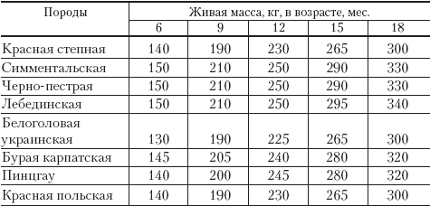 Целесообразно ориентироваться на приведенные ниже нормативы выращивания телок разных пород.