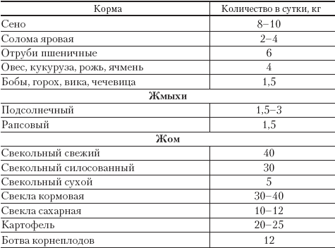 Максимально допустимые ежедневные нормы дачи кормов корове приведены в таблице.