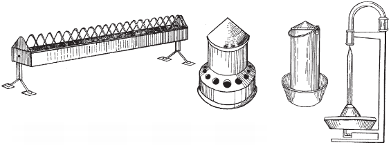 Поилку можно изготовить из досок в виде треугольника или из цементной или гончарной трубы, распилив ее вдоль на две равные части. Из проточной поилки вода должна поступать в утепленную сточную яму, которую устраивают возле птичника. Поилку можно сделать с электроподогревом. Для этого используют электроподогреватель воды на 20, 60 и 100 Вт (соответственно на 10, 50 и 100 л воды), который опускают в поилку.