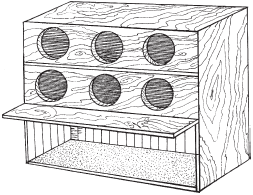 Отдельную кормушку отводят под раздачу минеральных подкормок. Ее изготавливают в виде плоского ящика произвольного размера. В ней постоянно должны находиться измельченные мел, ракушка, а также мелкий гравий или крупнозернистый песок.