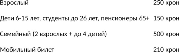Для самостоятельного осмотра можно взять аудиогид, который доступен на русском, английском, французском, немецком, итальянском, испанском и чешском языках. Стоимость на 3 часа – 350 крон, на весь день – 450 крон.