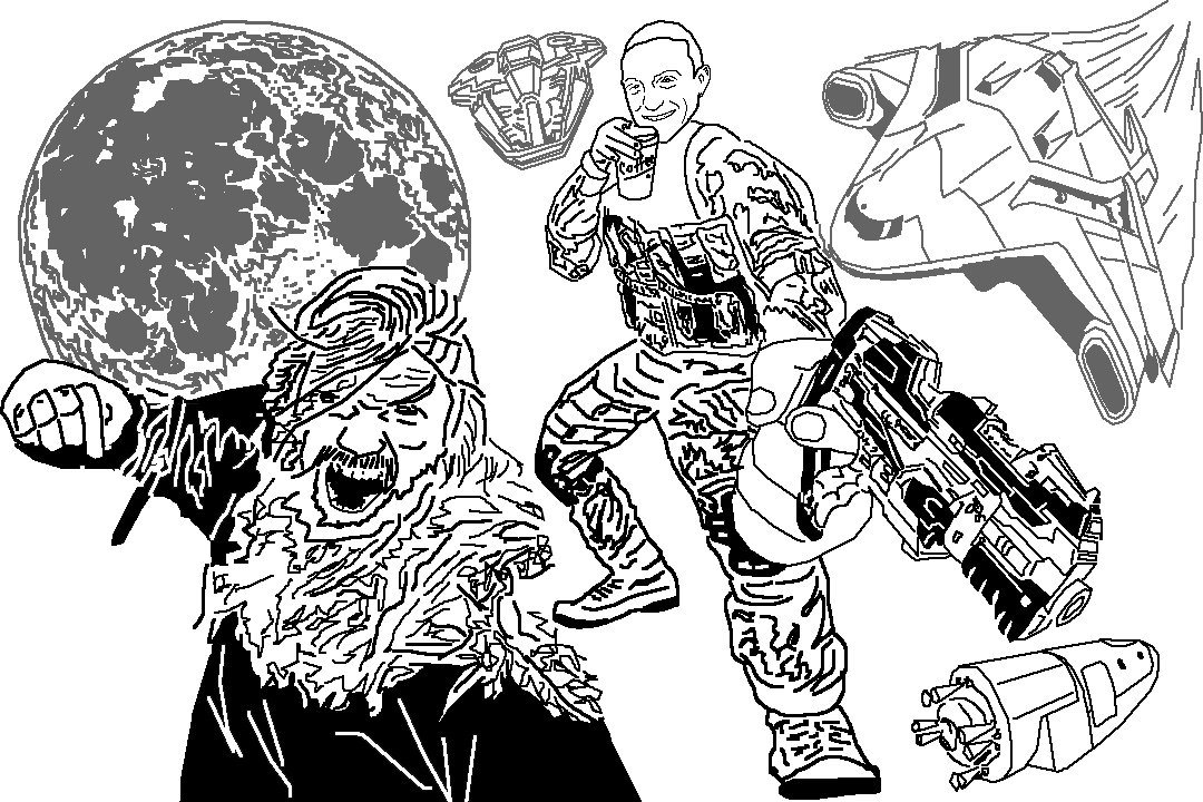 А теперь Марсиане снабжают Лунатиков новым вооружением, и те пытаются грабить проходящие мимо корабли, устраивают набеги на станции, которых много расплодилось вокруг Земли-матушки. Так, по крайней мере, говорят по головизору. А, ведь недавно мы их самих считали своим сателлитом, спутником. Карманным почти )