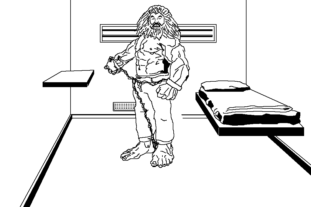 В комнате Даркнета как и полагается, полный Дарк и света Нет. Лишь три голографа светятся, выдавая на одном трёхмерную проекцию части космического пространства. На втором, видимо, отслеживают траекторию перемещения какого-то важного груза. А третий показывает лохматого мужика, закованного в кандалы в одиночной камере.