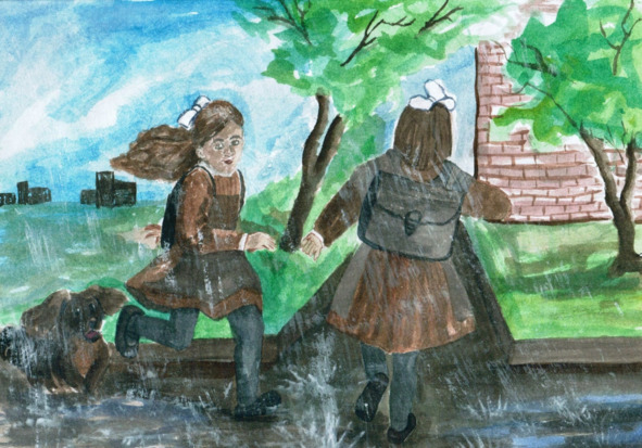 Это был дождливый весенний день. Я шла в школу, не слишком торопясь и не опасаясь сильно промокнуть. Мне нравилось наблюдать за людьми, спешащими по делам. Они шли торопливо, глядя лишь себе под ноги, словно ожидали увидеть там что-то интересное. Среди тех, кто попадался мне на глаза, я неожиданно увидела свою лучшую подругу Марину. Марина была не только моей подругой, но и соседкой. Ито, что она шла мне навстречу, означало лишь её возвращение обратно домой. Но уроки ещё не начинались, и я сильно удивилась нашей встрече. Лицо же Марины при этом сияло от счастья, а рядом с ней шла мокрая, но милая собачка.