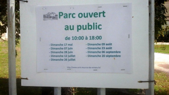 На металлической ограде, слева, висел белый прямоугольник из фанеры, с закреплённым на нём плотным листом бумаги с графиком посещения усадьбы для всех желающих. Оказалось, дом открыт для посетителей с 17 мая 2015 года. (Приедь мы в прошлом году, о его посещении не могло бы идти и речи). Ивонна, глядя на график, пояснила: дни посещений в августе – только два воскресенья, 09 и 23. Мы же приехали в субботу, 15-го августа, потому усадьба оказалась закрытой.