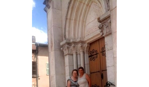 С Ивонной на ступенях церкви