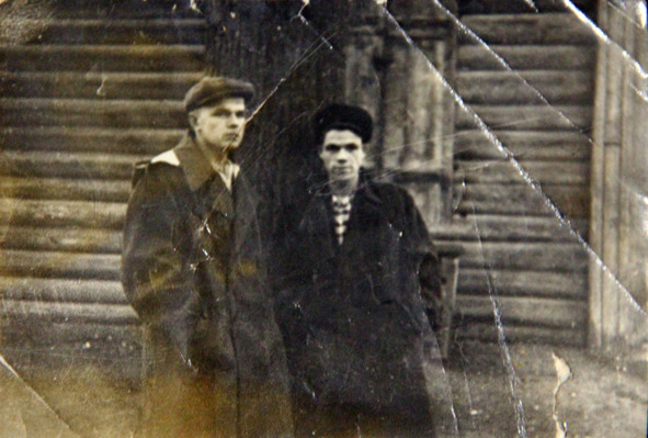 Папа (слева) в Избоищах с Александром Орловым, мужем средней сестры Лиды, 1962 год