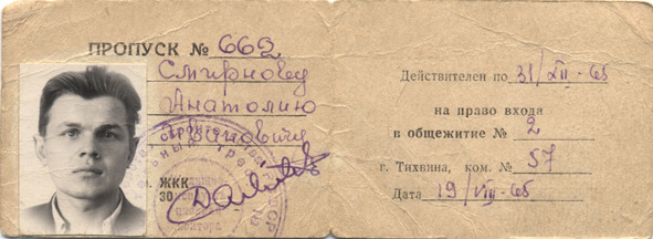 Пропуск в общежитие, Ленинградская область, 1965 год
