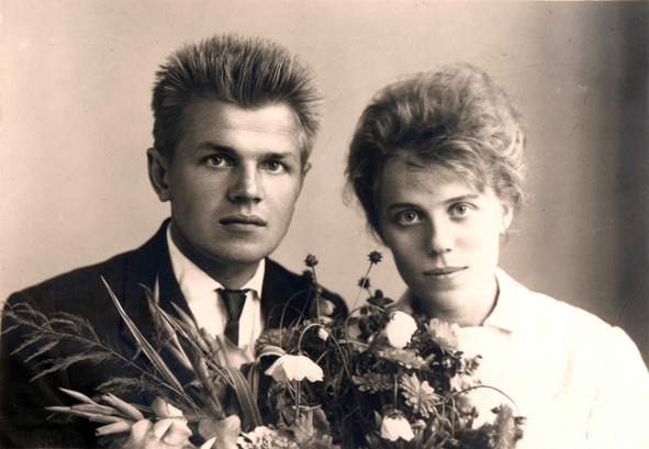 Свадьба папы и мамы, Устюжна. На обороте фотографии надпись, адресованная младшему брату Александру Петровых: «Сань, это мы с Толиком в день записи. Это было 7 августа 1965 г. С этого дня я стала Смирновой Галиной Ивановной. 24/VIII-1965 г.»