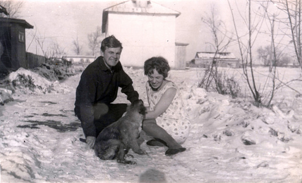 Папа с мамой рядом со своей квартирой. Лукьяновка, 1968 год