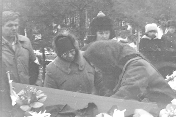 Похороны моего двоюродного брата Александра Хазова. Слева направо: папа, мамины сестры Клавдия Петровых и Тамара Хазова, за ними Татьяна Нюнько, справа сзади Алена Макарова и Олег Нюнько, за ними, вроде, Сергей Хазов, ноябрь 1986 года