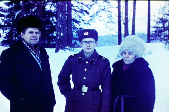 Папа, Олег и мама приехали ко мне в гости в воинскую часть. Белоруссия, Падневичи, 27 декабря 1986 года