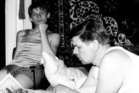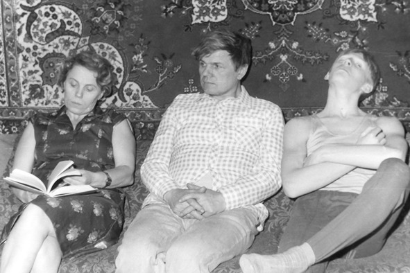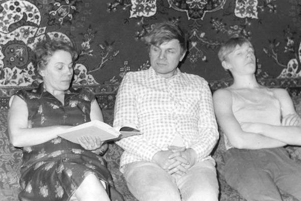Олег решил снять интересную композицию: мамин портрет, обрамленный читающим папой, 1986 год