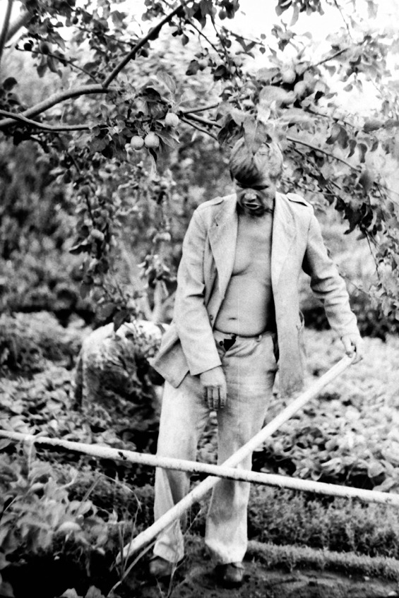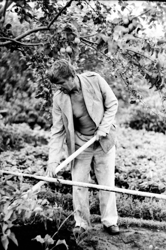Папа на даче. Сзади слева видно склонившуюся маму, 1986 год