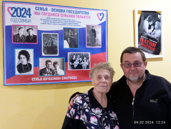 В МДТ у плаката, посвященного Году семьи – с фотографиями из нашего семейного архива. Фото Ольги Садчиковой, 9 февраля