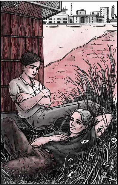 Лусьо прислонился к дощатому боку голубятни и вытянул ноги, а Дени растянулся на траве и стал глядеть на облака. Лицо у него было хмурое, да и мысли, вероятно, невесёлые.