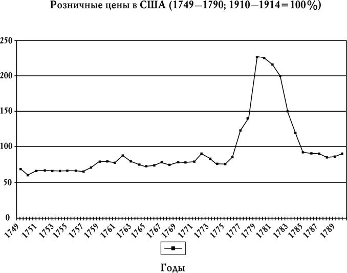 Рис. 8. Оптовые цены в США (1749–1790; 1910–1914 = 100 %)