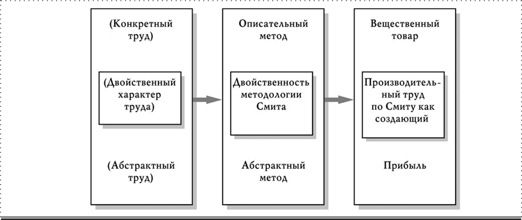 Несмотря на свою противоречивость, концепция производительного труда Смита явилась важным вкладом в научную трактовку проблемы. Производительный труд действительно является двойственным феноменом: с одной стороны, это труд, производящий общественную потребительную стоимость и тем самым воспроизводящий производительные силы общества (средства производства и рабочую силу как личный фактор производства), а с другой – это труд, производящий прибыль, т. е. воспроизводящий капитал, капиталистическую систему экономических отношений.
