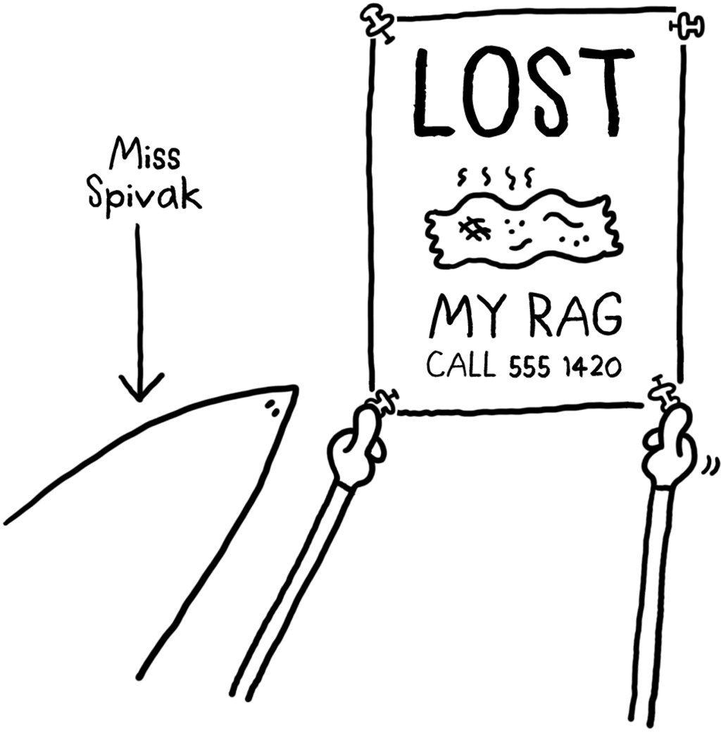 ‘LOSER!’ shouted Miss Spivak, putting her finger up to her lips. ‘Don’t make me lose my rag!’