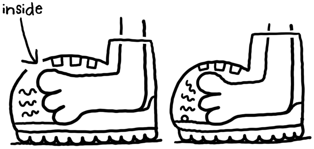 I Future-Ratboy-zoomed my eyes in and tried to work out what it was. His trainers looked normal, all scuffed up and stinking of foot cheese like they always did.