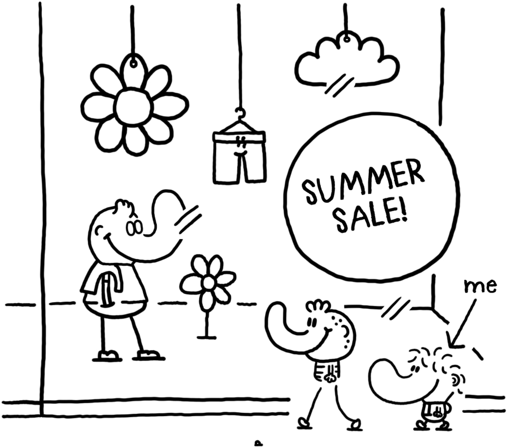 Summer was coming up, and the whole window was filled with swimming trunks and other holidayish things like that.