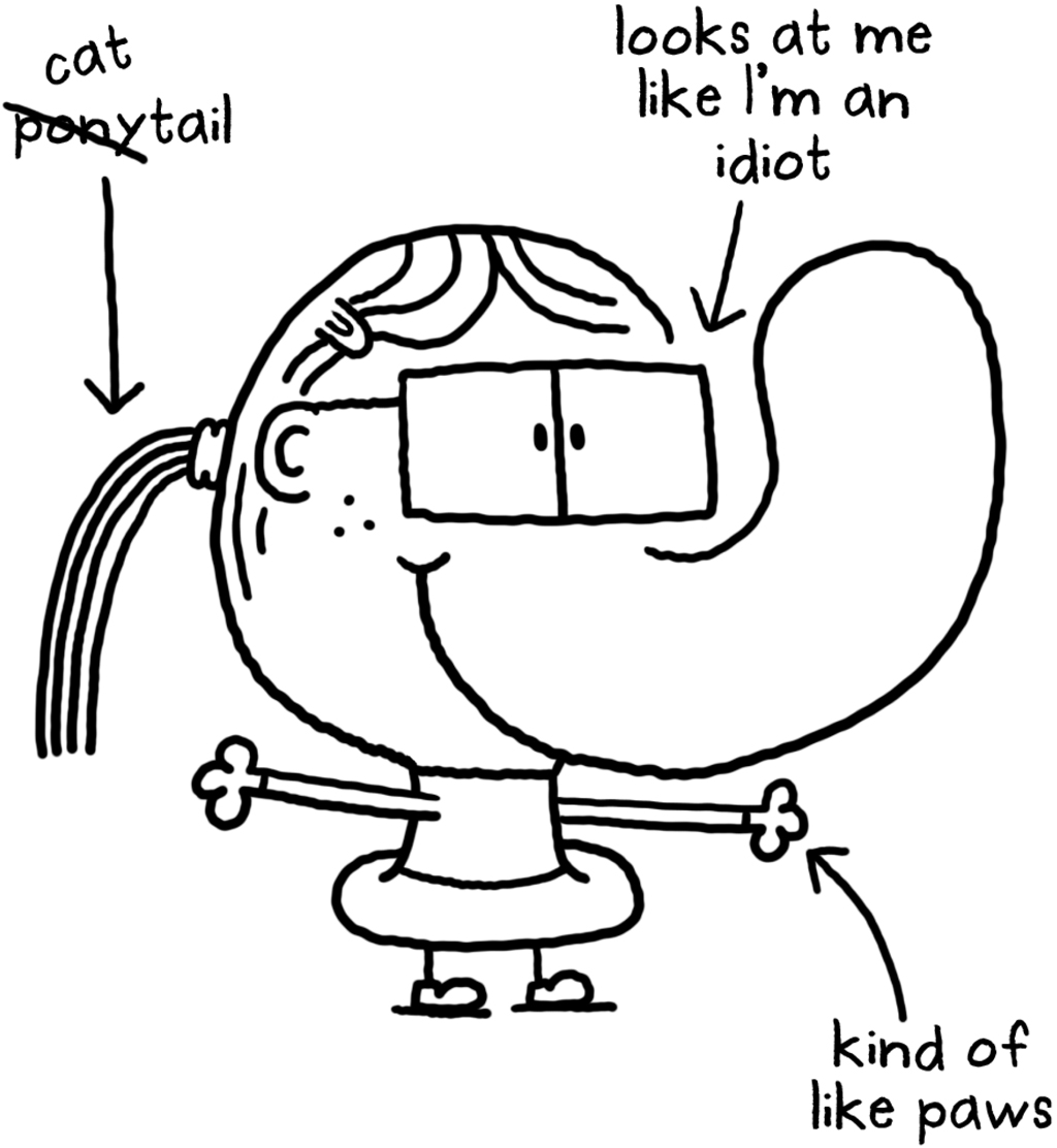 ‘Thanks a LOT for getting me in trouble!’ I said, smelling Bunky’s cheesy feet standing behind me. ‘I’m never gonna get a scratch-and-sniff sticker now,’ I moaned, turning round and doing a surprise blowoff.