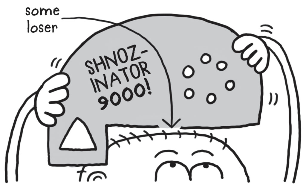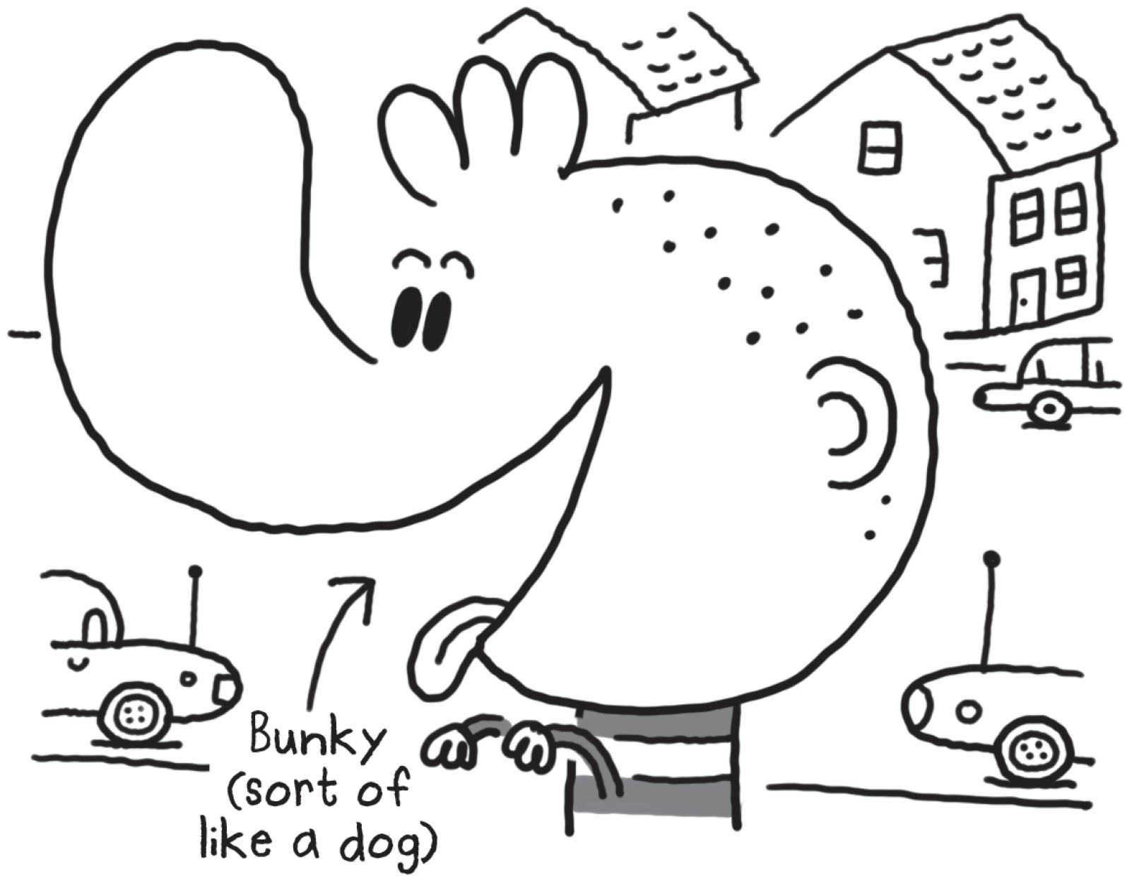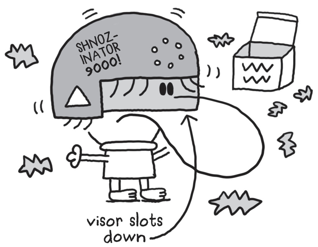 ‘Did you get a SHNOZINATOR 9000?’ grinned Bunky. ‘Is it the keelest thing in the whole wide world amen? Why aren’t you wearing it right now? If I had a SHNOZINATOR 9000 I’d put it on and never take it off again for the rest of my life!’