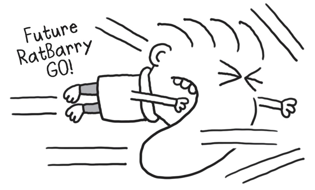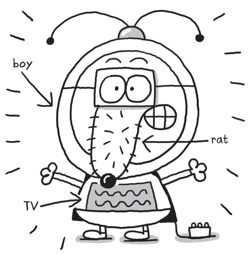 Future Ratboy is my favourite TV show. It’s all about this keel kid who’s been zapped millions of years into the future and transformed into a half-boy, half-rat, half-TV.