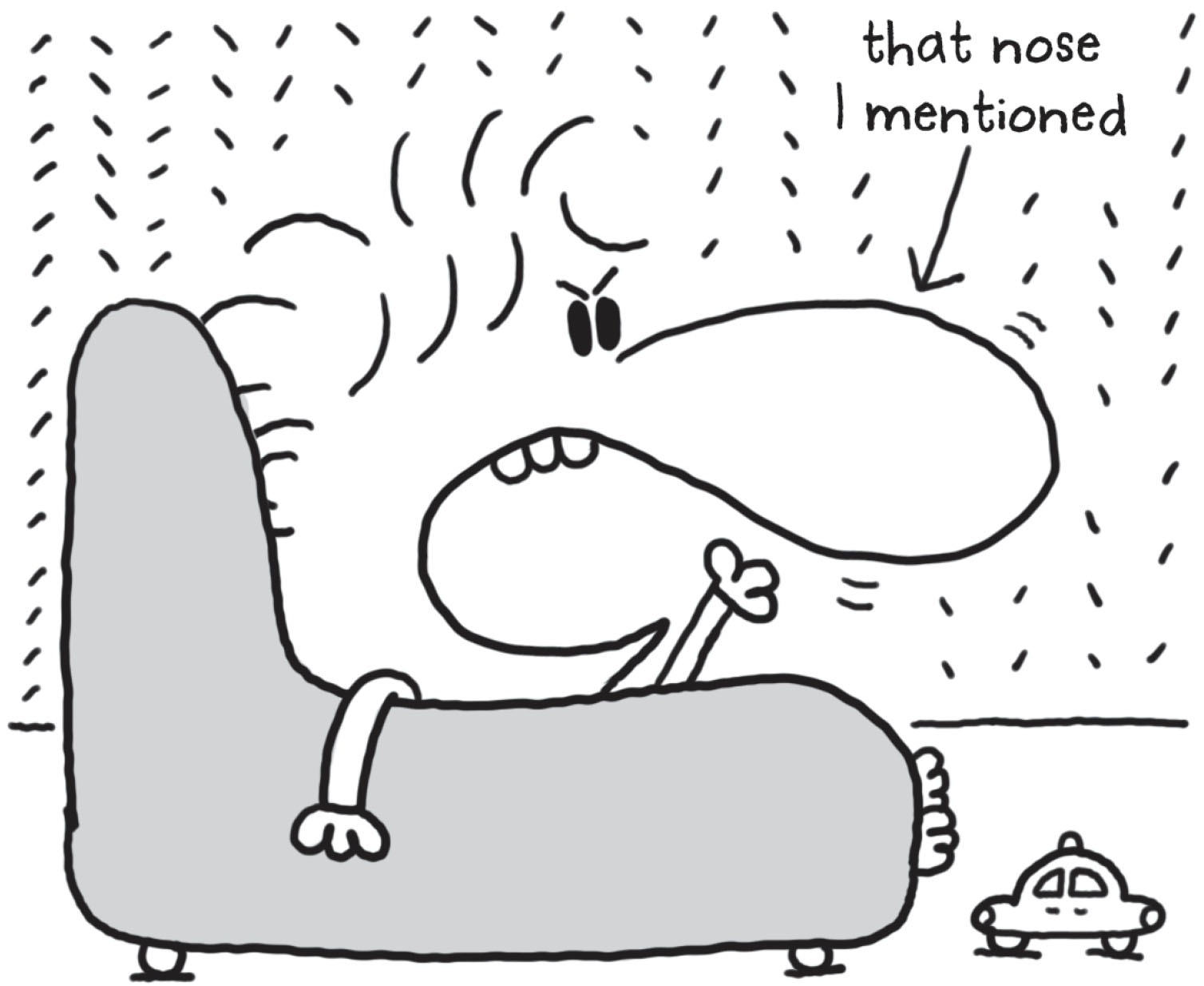Saying it out loud like that made me sound like a bit of a weirdo. I grabbed a pillow and squodged it over my head, wishing it was a SHNOZINATOR 9000 that’d zap me straight to Shnozville.
