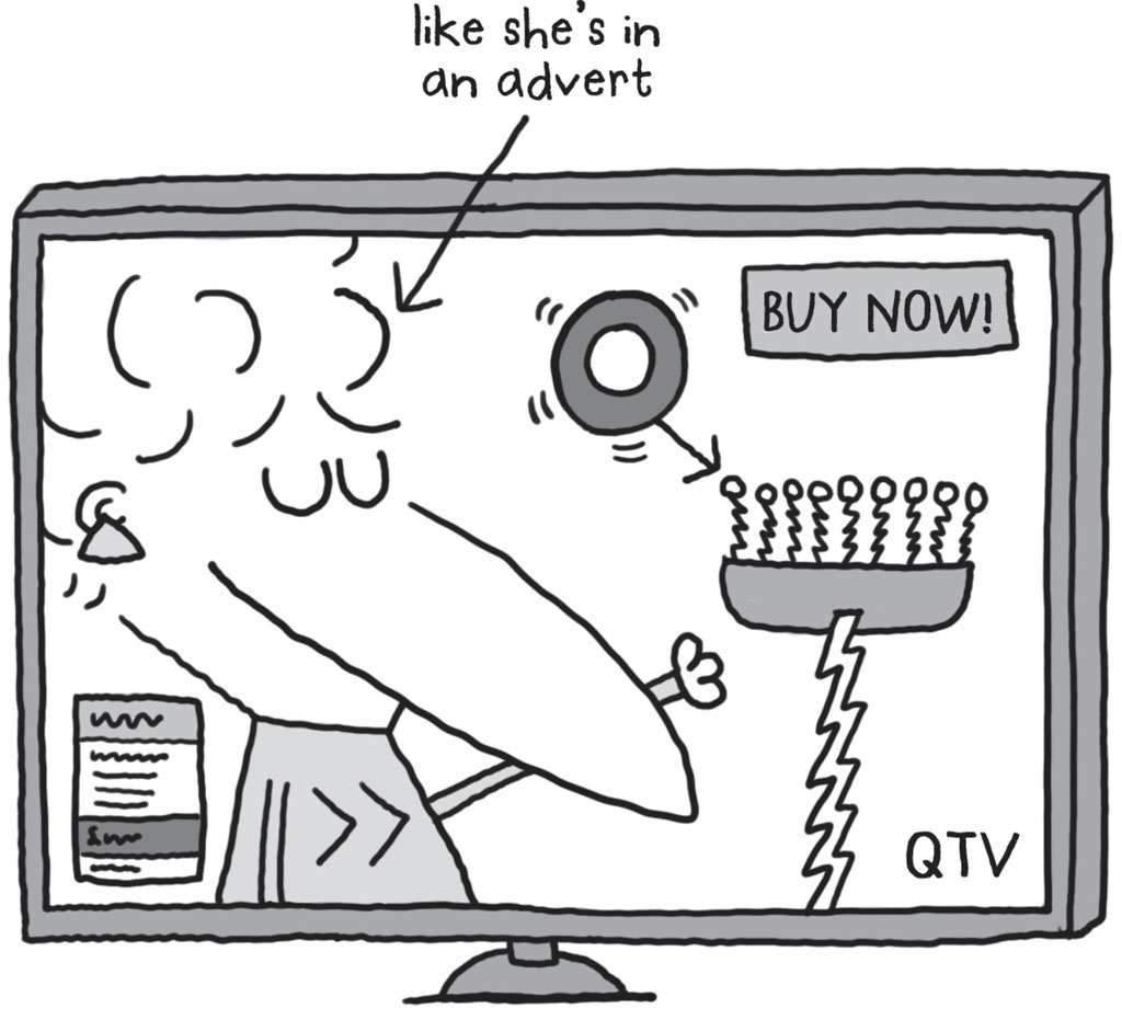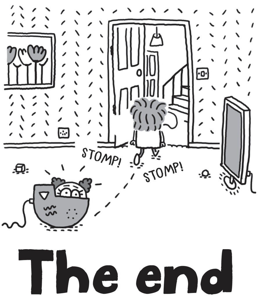 ‘No probbles!’ said my mum, grabbing her ZOOM-E-BROOM and sweeping the crumbs into a dustpan. ‘Thanks to its microscopic bristle-wheel technology, the ZOOM-E-BROOM is up to ninety per cent faster than the next-fastest broom on the market!’ she smiled.