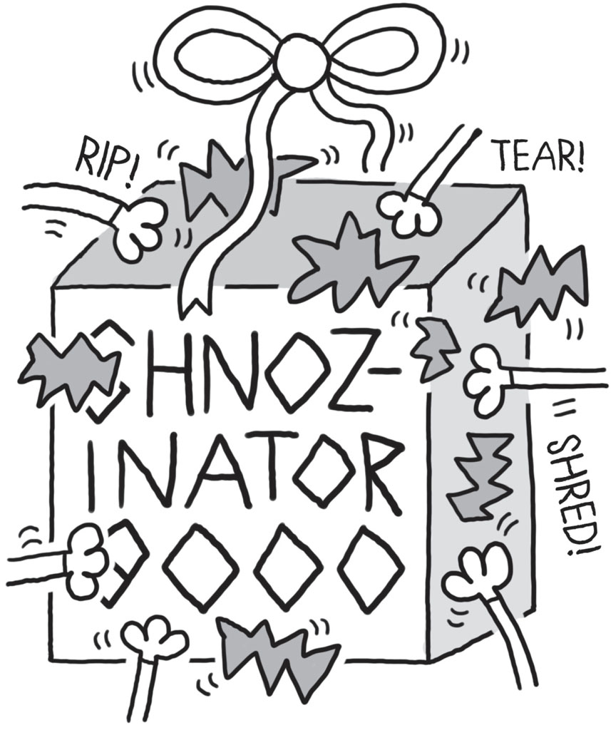 ‘Oh. My. Keelness!’ I said, ripping open the huge shiny silver present. Inside was a white cardboard box with ‘SHNOZINATOR 9000’ written on it in futuristic letters.