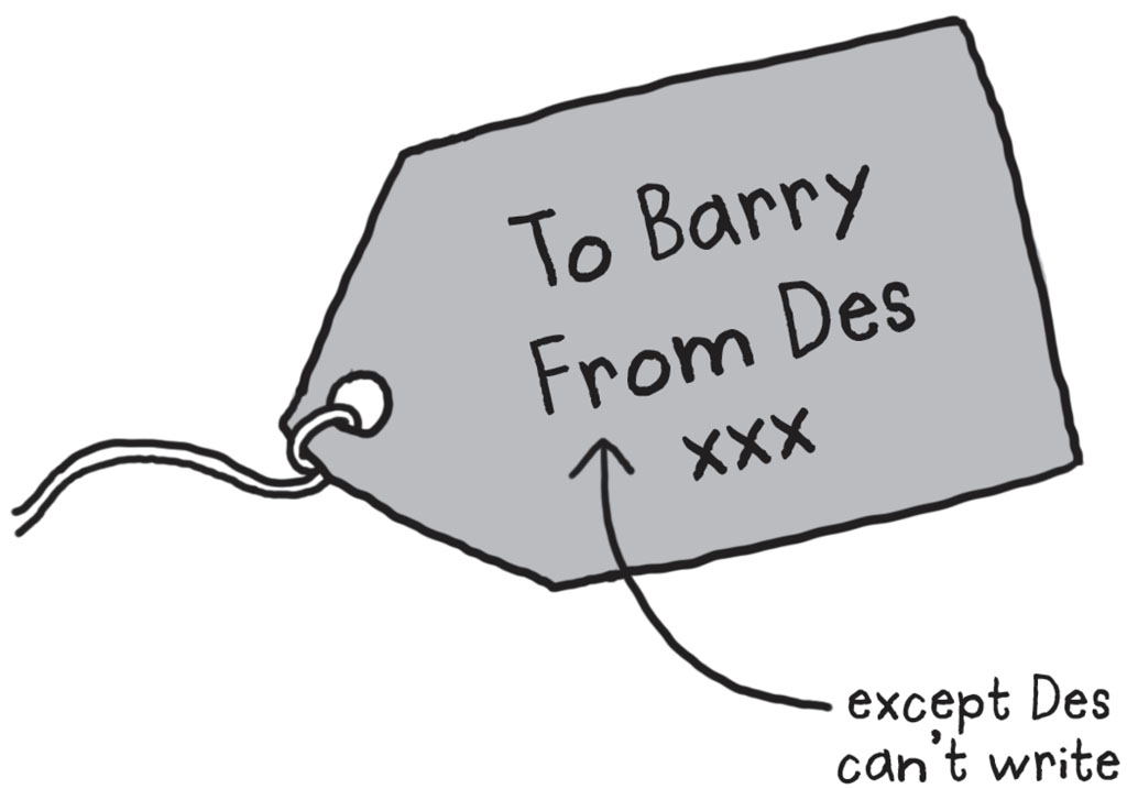 ‘I don’t care,’ said my mum, grabbing my arm and marching me down the stairs again. ‘Desmond’s a baby – he doesn’t know what he’s doing. You’re a big boy, Barry – you should know better!’
