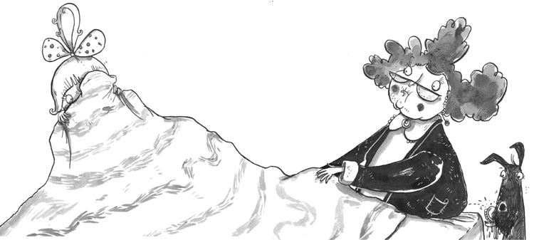 “You had a great-auntie who suffered with her nerves,” Bad News Nan droned on, not noticing the snuffling dog. “Great-auntie Primula. She took to her bed one Christmas after her pudding set fire to the living-room curtains. Refused to move out of her room again, even when she got the boils.”