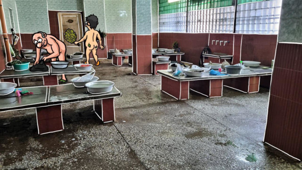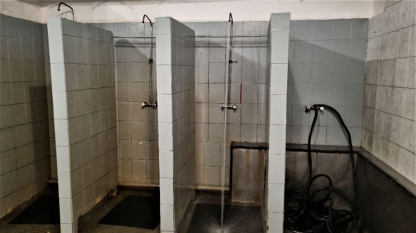 Роту заводить одновременно можно легко, но душевых всего три. Ну да ладно, шаек много, лавок присесть достаточно. Из тазиков испокон веков омывались, а эти три все равно без насадок и по голове струей лупят достаточно серьезно.