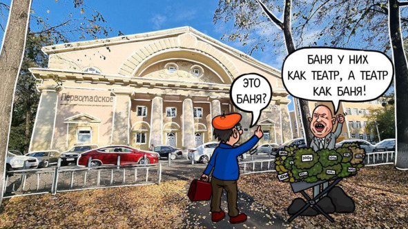 Именно в адрес этого здания он бросил знаменитое: «Баня у них как театр, а театр как баня!» Помпезному античному фасаду он противопоставил скромное здание Свердловского драматического театра на улице Вайнера.