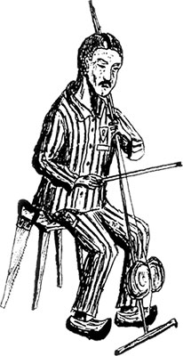 Клоун подумал и решил: можно исхитриться. Он сочинил такие номера, для которых не требовалось ни обычных для цирка кеглей, ни шаров. Придумал свой самый необычный музыкальный инструмент: струнофон. Прицепил к простой швабре две натянутые, как струны, проволочки, снизу пристроил пустую консервную банку… Играя на «музыкальной швабре», он пел для детей забавные частушки.