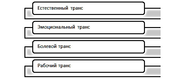 Часто рабочий, эмоциональный, болевой и естественный транс создают индивидуальные комбинации, что не мешает им оставаться именно трансом.