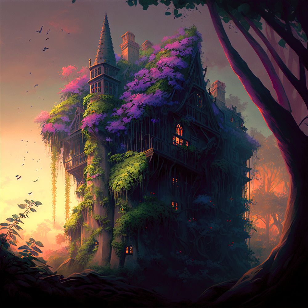 Когда глаза привыкли к яркому весеннему солнцу, медленно скрывающемуся за горизонтом, перед измученными путешественниками восстал из сказочных снов замок, стены которого состояли из плетущихся деревьев. Сочные зелёные листья, вместо черепицы, покрывали крыши высоких башен по краям. В центре замка над кроной деревьев возвышались три спиральные башенки, крыши были оплетены гроздьями ярких цветков фиолетового, красного и розового оттенков. Заходящее солнце ловко играло бликами на огромных листьях стен по бокам, создавая иллюзию лёгкого зеленовато-жёлтого и оранжево-красного градиента. Сказочный замок прекрасно вписывался в атмосферу леса, расположенного вокруг него, добавляя своим присутствием ощущение чуда. Лис могла бы часами заворожено рассматривать удивительную картину, созданную самой природой со вкусом, но её занятие прервал уставший голос Керлея.