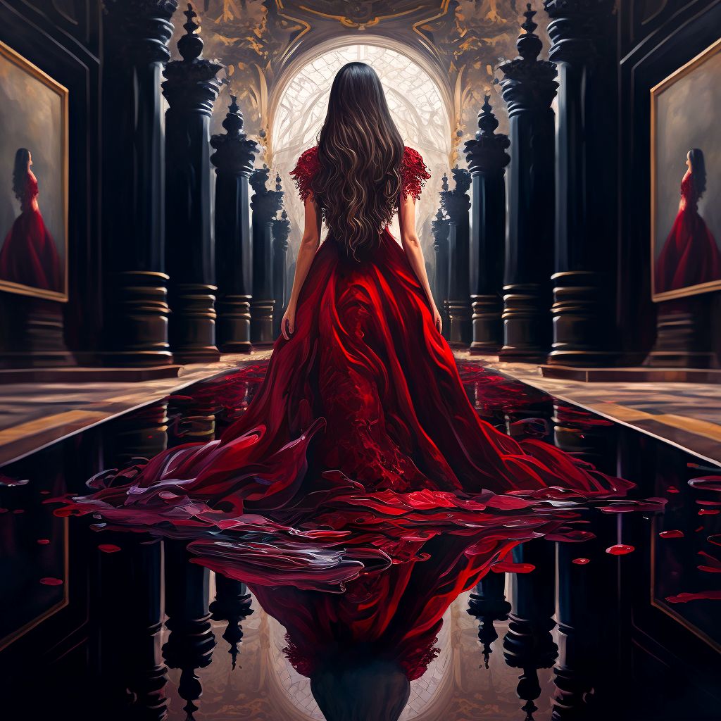 Когда они подошли ближе, Том увидел в паре шагах от себя девушку в коротком платье рубинного цвета и в чёрных леггинсах. Длинный шлейф волной опускался на пол, и складывалось впечатление, будто она была истоком кровавой реки. Жуткой, но невероятно прекрасной. Декорированный чёрными розами корсет изящно подчёркивал тонкую талию. Её тёмные и волнистые волосы ниспадали на плечи, прикрывая спину. На голове была корона, в форме бутонов цветов, такая же блестящая, как и сама комната. Красные камни переливались на холодном свету и отражались в зеркальных стенах. Девушка стояла к нему спиной, но он узнал её.