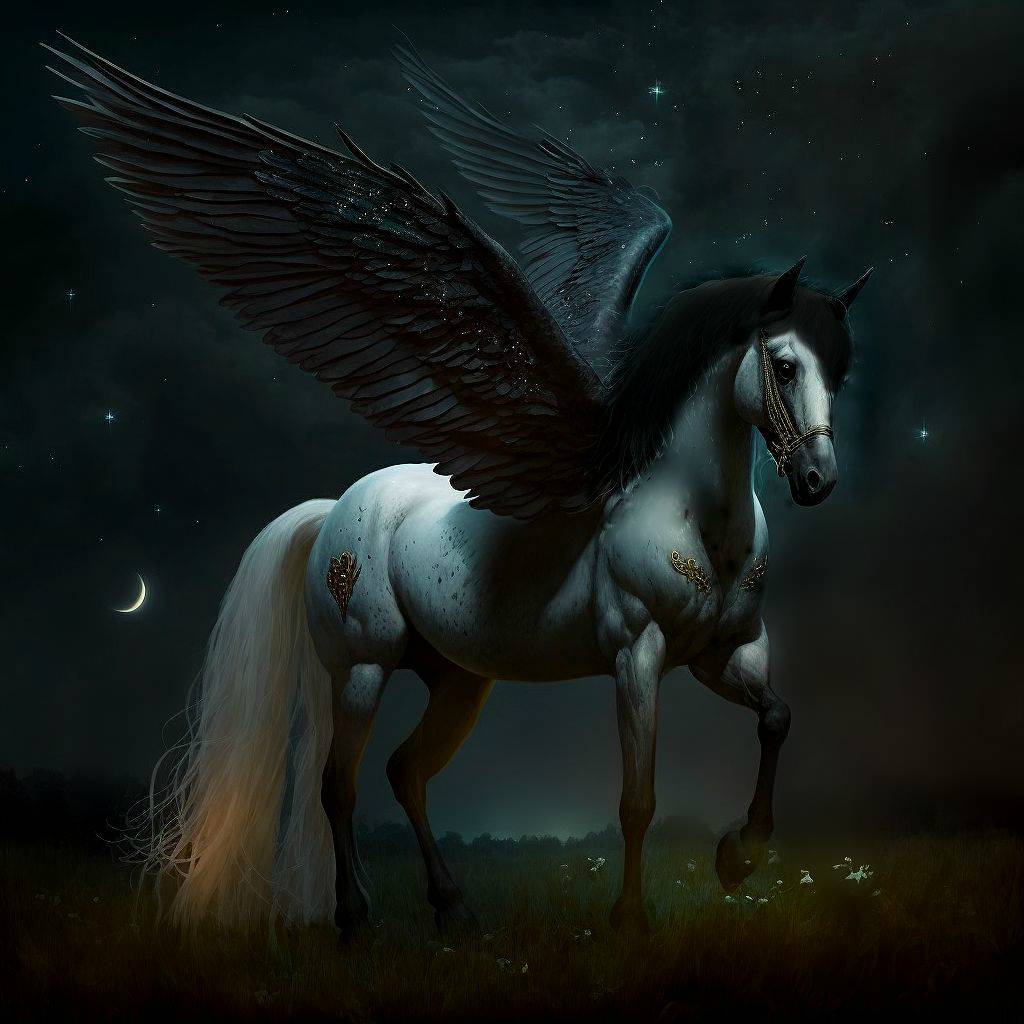 Сильный порыв ветра влетел в комнату, как ураган, Лис закрыла лицо и глаза от пыли. Стало темно и послышалось тяжёлое дыхание похожее на ворчание. Она нерешительно посмотрела сквозь пальцы и на миг замерла в изумлении. Белоснежная фигура пари́ла напротив окна. Холодный лунный свет играл на теле невиданного животного, как на белокрылом ангеле. Изящное создание внимательно смотрело на девушку, издавая лёгкое ржание и махая головой. Чёрная грива ниспадала на белую мордашку коня, прикрывая несколькими прядями большие и добрые глаза.