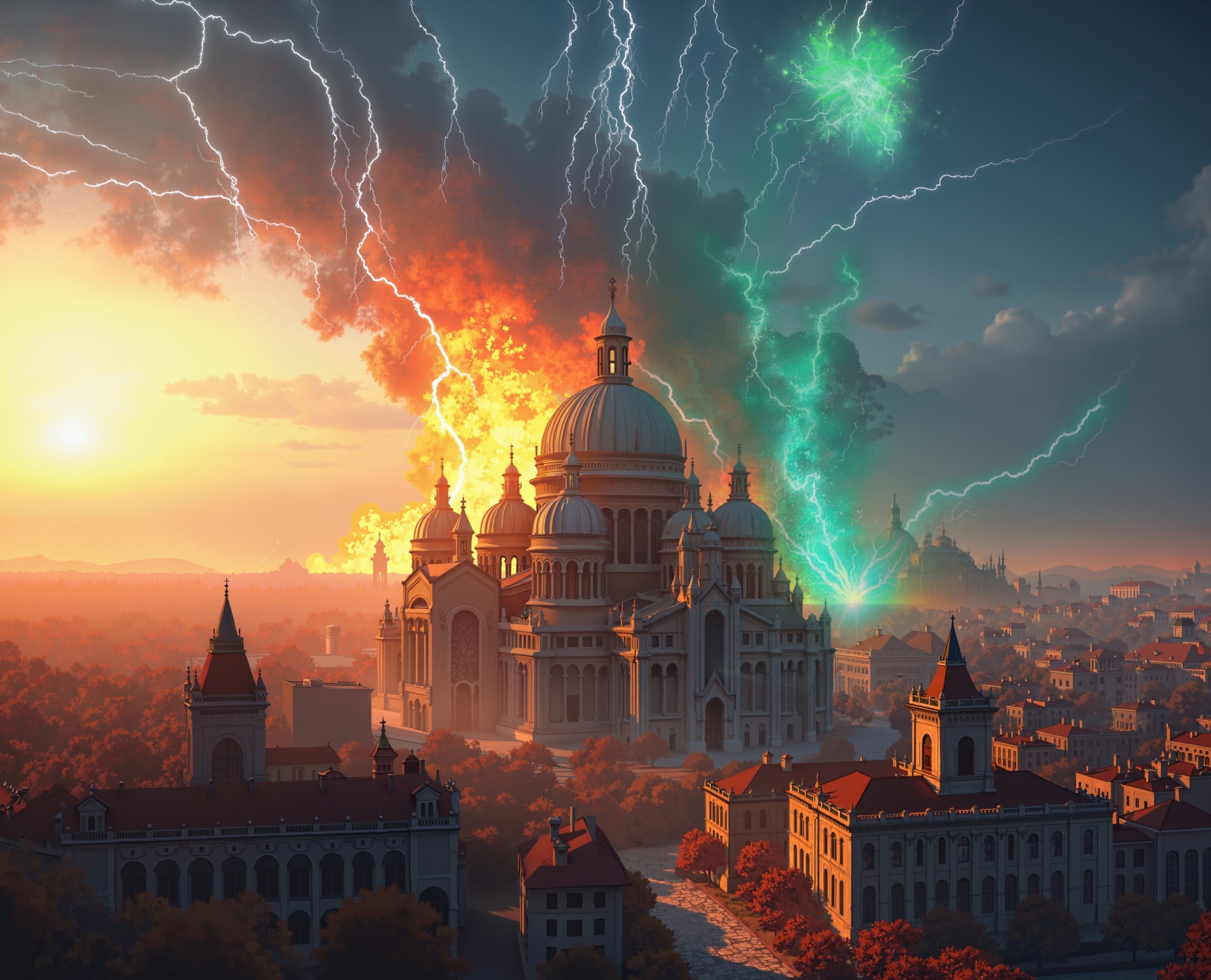 Следом в небо взмыли четыре росчерка, и почти сразу опали на землю. Пространство вокруг них полыхнуло белой вспышкой, ломая деревья и руша целые здания. Судя по проявившимся магическим куполам, били стихийники по засаде.